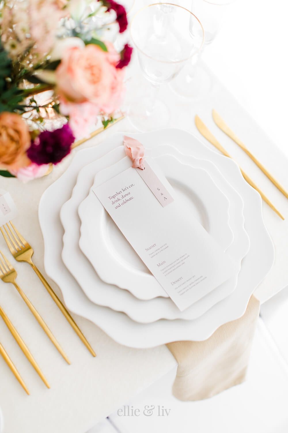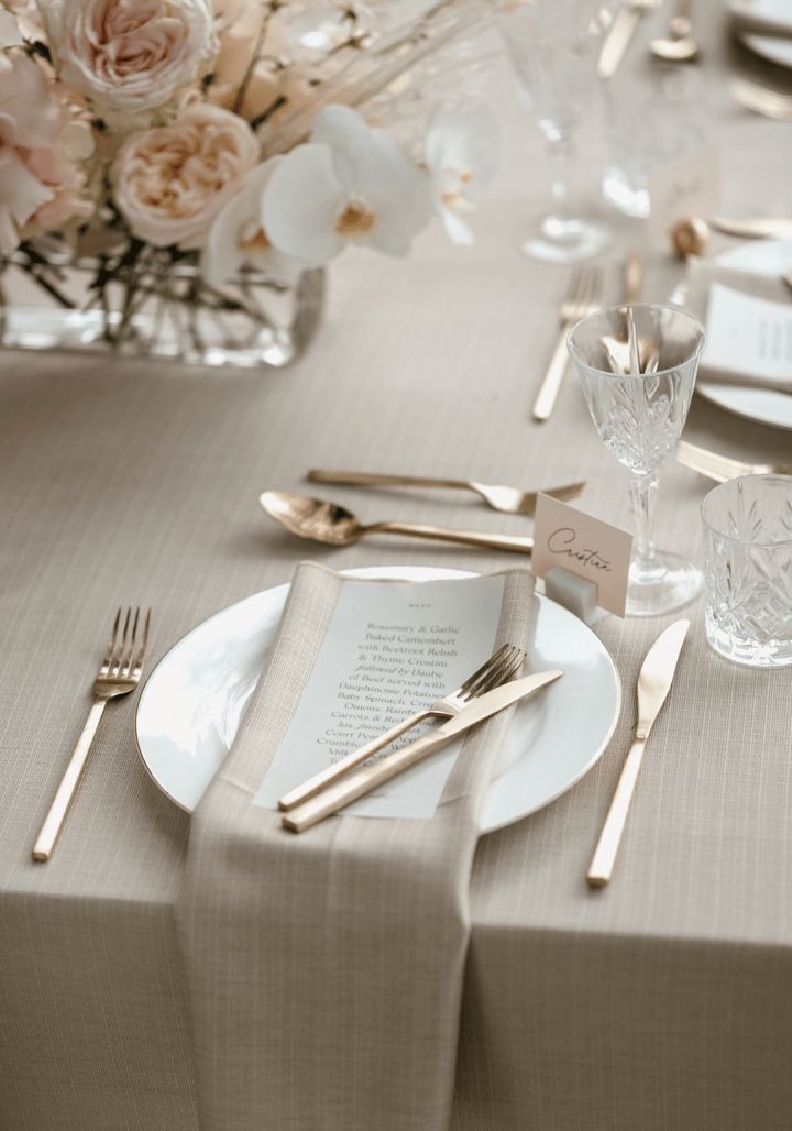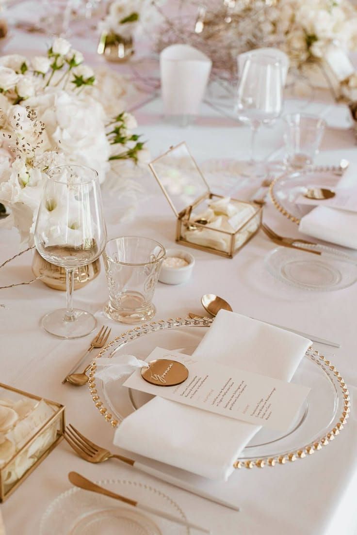 - zlatý príbor + ivory / champagne dekor = luxusná svadba