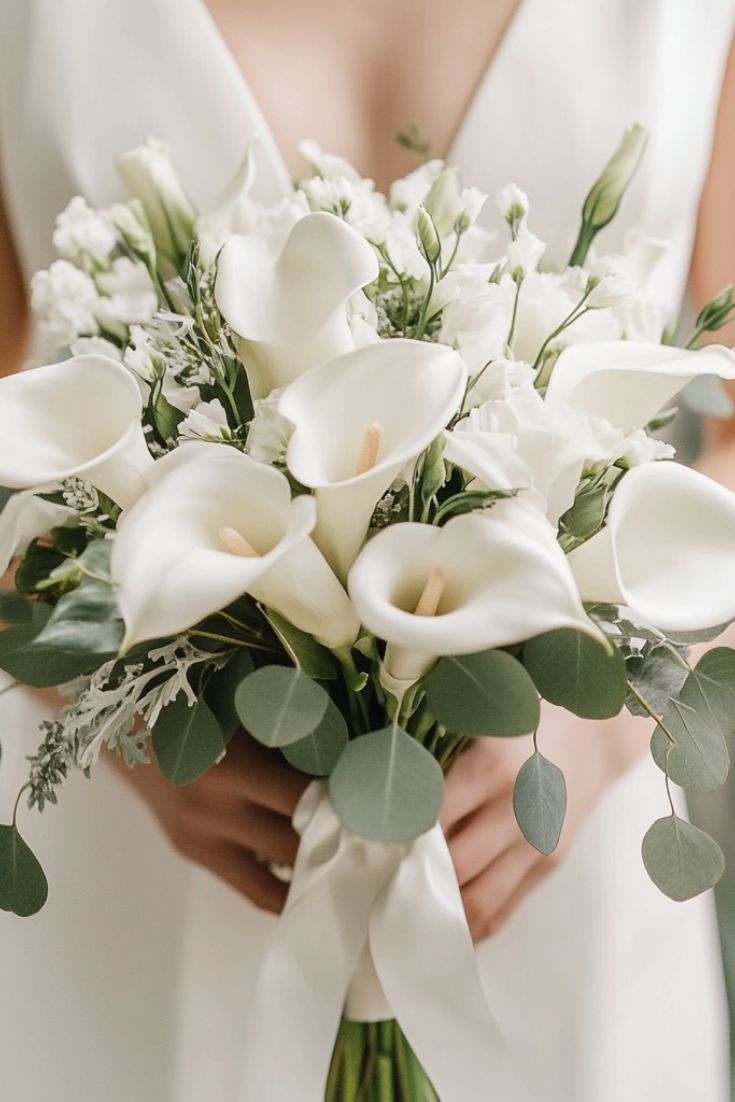 Minimalistické kytice s kalami, antúriami alebo výraznými tvarmi kvetov sú ideálne pre moderné a elegantné svadby. Jednoduché línie pôsobia luxusne a nadčasovo.